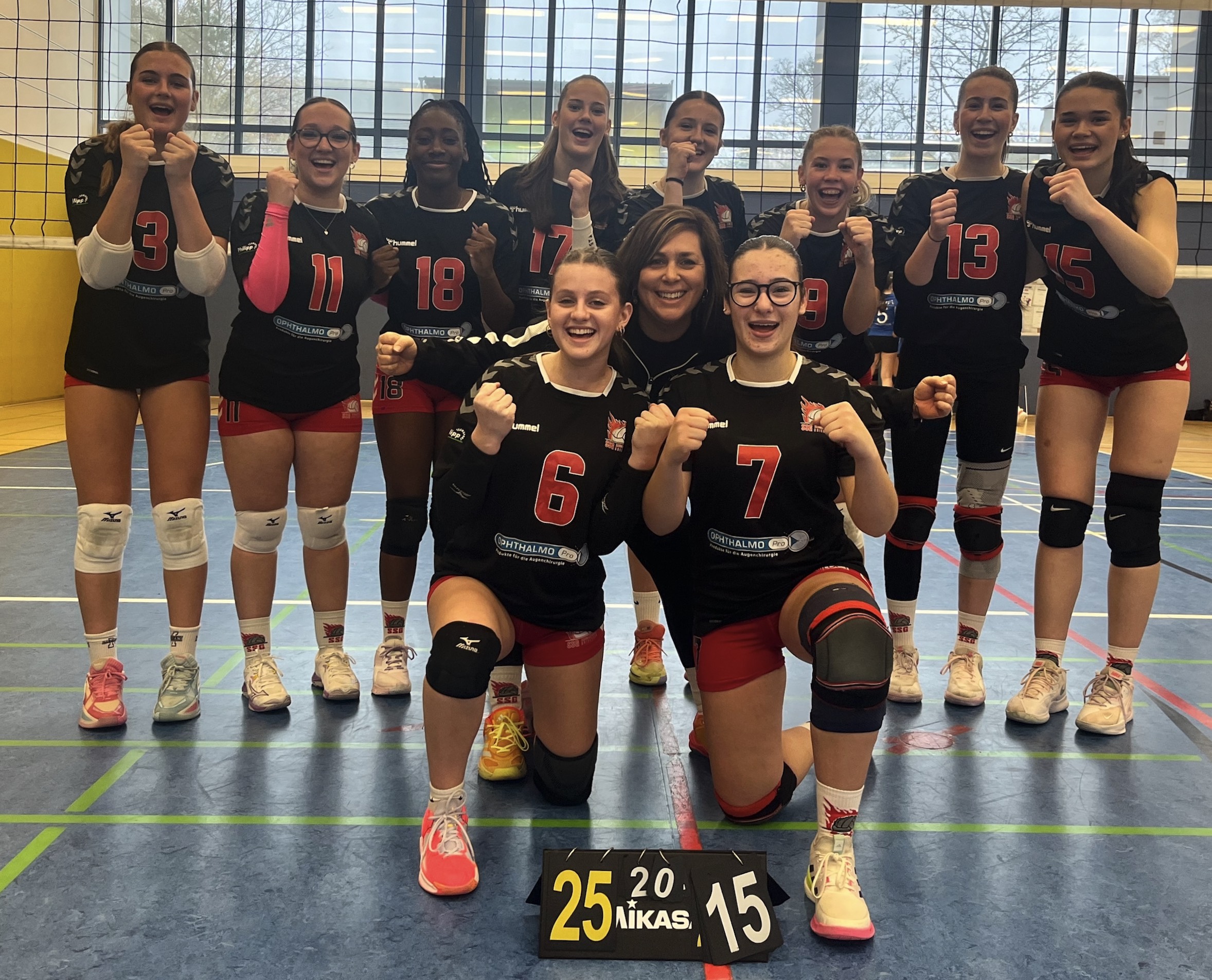 Von Beginn an zeigte das Team eine starke Performance und erkämpfte sich Punkt für Punkt, insbesondere durch die kraftvollen Aufschläge von Anna-Lena Schön. Der erste Satz ging mit 25:19 an die SSG. Nachdem die anfängliche Nervosität abgelegt war, konnten die folgenden Sätze noch klarer gestaltet werden. Dank einer herausragenden Abwehrleistung – der bislang stärksten der Saison – entschieden die Mädels auch Satz zwei und drei deutlich für sich (25:14; 25:12).